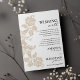 Um cartão de poço de desejos de casamento moderno com tipografia preta e flores brancas elegantes em ouro.