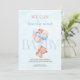 Celebre a chegada com este adorável convite de chá de fraldas "Nós podemos esperar muito cedo". Apresentando um ursinho bonito com balões pastéis, este design capta a alegria e entusiasmo de acolher um novo bebê. Perfeito para um chá de fraldas doce e encantador. Totalmente personalizável com detalhes do evento para torná-lo exclusivamente seu.
