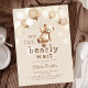 Podemos esperar chá de fraldas em bege e marrom. Tendy bear design com tema de aquarela, ursinho de pelúcia bonitinho, balões e fontes de script. Perfeito para uma elegante celebração de chá neutra em termos de gênero. Personalize com seus próprios detalhes. Impressos convites Zazzle ou modelo de impressão digital instantânea para download.