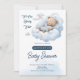 Celebre a chegada do seu pequeno pacote de alegria com este convite de chá de fraldas sonhador! Apresentando um urso-cama suave em uma nuvem suave, estrelas brincalhonas e aviões pastéis, este design é adorável e animador. 🧸 Destaques Incluem: Encantadora frase "Nós podemos esperar" Nuvens moles no estilo aquarela e fofinho urso Paleta azul Gentil perfeita para um bebê Rapaz Totalmente editável detalhes de eventos
