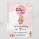 Aquarela Podemos esperar ursos chá de fraldas elegante e moderna tipografia do ouro balões de ar quente, para cima e para fora, tema do urso, rosa, chá de fraldas de menina, estrelas cintilantes de ouro, cor-de-rosa-claro e bronzeado
