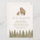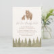 Convide amigos e familiares para comemorarem um pouco no caminho com este convite de chá temático da floresta, com pinheiros aquarelas e ursos em cores mudas.