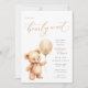 Celebrar a chegada de um pequeno com este charmoso convite para chás de fraldas, com um doce ursinho d'água segurando um balão. Esta design bonitinha e neutra em termos de gênero é perfeita para qualquer tema de chá de fraldas. Com uma escrita delicada e detalhes elegantes, ele dá um tom caloroso e convidativo para sua celebração. Personalize com todos os detalhes do evento, incluindo o nome, a data, a hora, o local e as informações do registro.