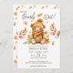 Podemos esperar fácil para personalizar os convites para bebês. Todo o texto é ajustável e fácil de mudar para as necessidades do seu próprio partido. ursinho de água e design de folha de outono.