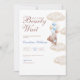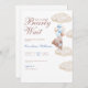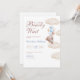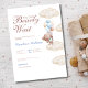 Celebrar a chegada com este charmoso convite de chá de fraldas azul de aquarela 'Nós podemos esperar muito'. Apresentando um adorável ursinho de pelúcia segurando um balão à direita, cercado por nuvens suaves, este convite captura o entusiasmo e a doçura de acolher um pequeno. Os tons azuis suaves acrescentam um toque sereno, perfeito para uma celebração divertida e acolhedora