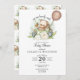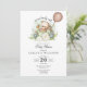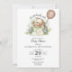 Um elegante e caprichoso ursinho-aquoso com chá de fraldas de balão em castanho neutro e verde-sábio com flores e a expressão: "podemos esperar muito". Um estilo giro de tendências para seus convites! O padrão do urso no fundo do convite.