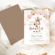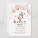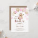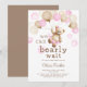 Podemos esperar o convite para chá de fraldas. Tendy urso tem design em cores cor rosa, marrom e beige neutra. Apresenta ursinho de pelúcia agudo, balões e fontes de script. Perfeito para uma elegante festa de chá de menina. Personalize com seus próprios detalhes. Impressos convites Zazzle ou modelo de impressão digital instantânea para download.