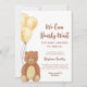 Este chá de fraldas bonito é decorado com um ursinho de peluche e balões. Diz "Podemos Andar Esperando" numa tipografia de na moda. Perfeito para um chá de fraldas neutro em termos de gênero. Facilmente personalizável. Use a Ferramenta Design para alterar o tamanho, o estilo ou a cor do texto. Original Watercolor © Michele Davies.