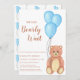O convite para o chá de fraldas deste rapaz é decorado com um ursinho de pelúcia e balões azuis. O texto marrom diz "We Can Barly Wait" na tipografia de na moda. Facilmente personalizável. Original Watercolor © Michele Davies.