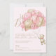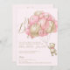 Comemore seu belo chá de fraldas com estilo com estes, podemos esperar muito tempo por convites para o chá de bebê. Este convite para meninas apresenta um adorável ursinho marrom de pelúcia segurando um monte de balões em uma mistura de pinks e golds, com um fundo rosa pastel e acabado com o texto clássico da letra caligráfica que diz "Nós podemos esperar mais cedo". Perfeito para um chá de fraldas para um chá de fraldas de menina.