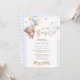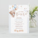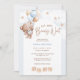 Prepare-se para celebrar o seu pequeno com este adorável convite de chá de fraldas "Nós podemos esperar muito"! Apresentando um doce ursinho de cor d'água segurando balões azuis e castanhos, cercado por estrelas e nuvens macios, esta design é perfeita para acolher um menino. O tema lúgubre e a paleta pastel macia criam um olhar quente e convidativo que seus hóspedes amarão.
