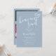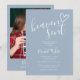 Um convite de chuvada de bebê minimalista moderno com um coração desenhado à mão e tipografia estilosa em um fundo azul poeirento e sua foto especial no verso. Criado por Thisisnotme©