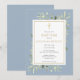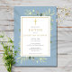 Com delicadas folhas de aquarela com um crucifixo dourado elegante, este convite de batismo | batismo elegante pode ser personalizado com as suas informações especiais, com um fundo azul poeirento no verso. Criado por Thisisnotme©