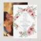 Um convite de casamento moderno e elegante com belas flores de rosa e tipografia elegante com a sua foto especial no verso. Criado por Thisisnotme©