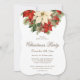 Elegant botanical Christmas party invitation featuring white and red poinsettia, red berries and other greenery.