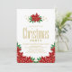 Compartilhe a alegria e convide seus amigos e entes queridos para a sua celebração de Natal com este elegante branco com texto de ouro poinsettia floral convite de festas de Natal.