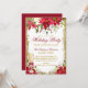 Feriado Elegante Moderno Festa de Natal Poinsettia Convite Floral - Dourado Quadro Glitter. Vidro de Champanhe com Arco Vermelho