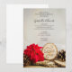 Convite Poinsettia Vermelho Rústico Post Brunch de Casamen