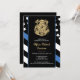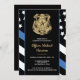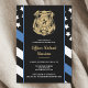 Honor the dedication and hard work of a new law enforcement officer with this customizable police graduation invitation. Featuring a police badge and the police force flag with bold black and white stripes and a proud thin blue line, this design symbolizes strength, service, and sacrifice. The invitation is personalized with the graduate’s name and party details, making it a memorable keepsake for friends, family, and fellow officers. Perfect for celebrating a police academy graduation, promotion, or milestone in a future officer’s career. Invite your guests in style and show support for the newest member of the thin blue line community.