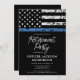 Celebrar a aposentadoria de um oficial com nosso Convite de festas de aposentadoria policial personalizável! Este convite divertido e na moda apresenta uma notável bandeira policial Thin Blue Line no topo, simbolizando honra e respeito pelos seus anos de serviço. Personalize-o com o nome e os detalhes da festa da aposentada. Perfeito para a família, amigos e colegas reunirem e comemorarem este marco especial. Tornar a sua festa de aposentadoria policial inesquecível com este convite único e memorável!