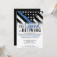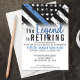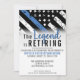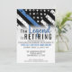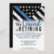 Este design apresenta uma bandeira da polícia com listras pretas e brancas, e uma fina faixa azul de linha também. O texto "A lenda está se aposentando" se senta acima de todos os detalhes partidários para os detalhes do polícia aposentado, xerife, capitão ou chefe do partido aposentado.
