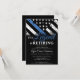 Este design apresenta uma bandeira da polícia com listras pretas e brancas, e uma fina faixa azul de linha também. O texto "A lenda está se aposentando" se senta acima de todos os detalhes partidários para os detalhes do polícia aposentado, xerife, capitão ou chefe do partido aposentado.