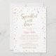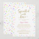 Este design adorável apresenta confetes coloridos de chuveirinho em aquarela e letras com brilho dourado.