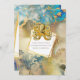 Uma bela mistura de azul aguarela; tons de dourado e marrom se misturam formando o cenário perfeito para uma ilustração vintage de um polvo amarelo mostarda posicionado ao longo da borda superior de uma moldura geométrica quadrada com um revestimento branco. O fundo tem uma sensação de tinta líquida e os tons listrados se assemelham às marés e ondas do oceano. Este design gráfico elegante e sofisticado é ideal para todas as ocasiões especiais com temas subaquáticos, oceânicos, costeiros e de praia. Personalize os modelos para se adequar ao seu evento.