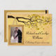 Celebre um aniversário de bodas de cinquenta anos com este adorável convite de modelo fotográfico. Este design apresenta uma árvore com folhas douradas, pássaros amorosos e uma moldura para uma foto do casal comemorativo pendurada nos galhos. O verso do convite tem amplo espaço para detalhes da celebração. Design vetorial original por Night Owl's Menagerie, 2015.
