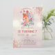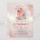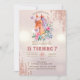Um pônei bonito com flores e rosa dourado goteja sobre um fundo rosa dourado.