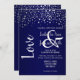Convite De Casamento. Apresentando um convite de casamento moderno em um fundo azul marinho escuro com pontos de confete prateado e a palavra amor em impressão ousado. ⭐ Este produto é 100% personalizável. Gráficos e/ou texto podem ser adicionados, excluídos, movidos, redimensionados, mudados, rodados etc... 99% dos meus designs na minha loja são feitos em camadas. Isso facilita o redimensionamento e a movimentação de gráficos e textos para que cada produto seja ajustado perfeitamente. 📌 (Não se esqueça de redimensionar, alterar, adicionar, excluir ou mover qualquer gráfico ou texto, se necessário, antes de fazer o pedido) Você também pode "TRANSFERIR DESIGN" em outros produtos do Zazzle e ajustar o design para ajustado na maioria dos itens do Zazzle. (clique na área de transferência abaixo) Alguns gráficos de texto estão prontos para preencher a(s) caixa(s) ou você pode clicar no botão "PERSONALIZAR" para adicionar, mover, excluir, redimensionar, colorir o plano de fundo ou alterar qualquer fonte ou gráfico. O design é feito com vetor de alta resolução e/ou gráficos digitais para um impressão profissional. 📌 NOTA: (ISTO É UM IMPRESSÃO. Todos os designs do Zazzle são "impressões", salvo indicação em contrário na área "Acerca deste produto") A design será impressa EXATAMENTE como se vê no ecrã e no produto...portanto, certifique-se de que, ao fazer suas alterações no redimensionamento de qualquer dos gráficos ou textos que ele ajustado nas áreas corretamente, e que sua ortografia e texto seja como você gosta que seja em tamanho, cor e fonte. Se você tiver alguma pergunta sobre o "SOMENTE DESIGN" ou precisar de ajuda, entre em contato comigo através do link da minha loja: https://www.zazzle.com/store/LetsUDesignIt (Copiar e Colar) Eu terei todo o prazer em ajudar. ⭐ TODAS AS OUTRAS QUESTÕES COMO (remessa, reembolso, impressão incorreta, o próprio produto, etc.), contacte a Zazzle ou o fabricante ⭐ diretamente ⭐. Obrigado pelo apoio e parada na minha loja - LetsUDesignIt. ⭐ ⭐ ⭐ ZAZZLE promete 100% de satisfação.