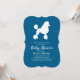 Jogue uma festa de poodle! Inclua o grande irmão ou irmã bebê pelado na comemoração com este adorável design de cachorro-do-poodle francês! Perfeito para um amante de cachorrinho com um bebê a caminho. O Poodle está ao lado de uma adorável carruagem vintage. O azul torna isso perfeito para um menino no caminho!