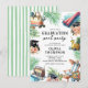 Set against a crisp white background, the colorful illustrations pop beautifully, creating a fresh and festive look that instantly sets the tone for a day of sunshine, laughter, and poolside graduation cheers. It’s the perfect way to invite friends and family to celebrate your graduate’s milestone in relaxed summer style.