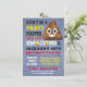 Uma super fofa, emoji, convida-te a uma festa de aniversário! A mão desenhou imogi com fontes divertidas em um fundo denim. Então não seja um soldado de festa e faça este convite divertido! Excelente para um garoto ou uma garota.
