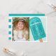 Acalme-se com estes convites de festas temáticos de picolé para a sua festa de aniversário de verão. O divertido design de verão apresenta uma brilhante ilustração de picolé em um fundo aqua leve. Personalize com seus detalhes de festa em letras brancas no estilo retrô e adicione uma foto da criança de aniversário para um toque especial extra.