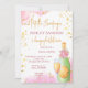 Pop do convite para o modelo de champanhe para download instantâneo, garrafa de champanhe, bolhas de ouro, salpicos cor-de-rosa, roteiro moderno.