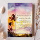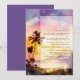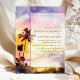 Dê as boas-vindas aos seus convidados para testemunhar a beleza do seu amor sob os céus pintados com o nosso convite de casamento Enchanted Evening Palm. Este design captura o encanto do pôr do sol com roxos ricos e laranjas quentes, realçados pelas silhuetas impressionantes das palmeiras. O gradiente sutil evoca os momentos fugazes e preciosos do crepúsculo, tornando-o um anúncio ideal para o seu casamento noturno ou ao ar livre. Apresentando uma janela para o seu dia especial, este convite é um testemunho do romance que começa quando o sol mergulha abaixo do horizonte.
