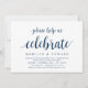 Cartão de convite temático Moderno Rústico, com escrita em azul-marinho (com título do cartão: por favor, ajude-nos a celebrar). É perfeito para o seu reception de casamento / festa de celebração pós-casamento. Adicione seus detalhes em fonte / letra preta correspondente.