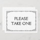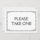 Sinal de casamento "Por favor, pegue um" simples e elegante no estilo art déco em preto e branco, personalizado com o seu próprio texto.