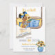 Menina sentada em uma varanda balançando em amarelo e azul com girassol e tema abelha. Use para chá de fraldas ou aniversário.