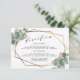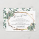 Este é um belo cartão de detalhes do casamento com eucalipto e design de quadro geométrico dourado. Inclui-se um fundo correspondente com o padrão das folhas de eucalipto.