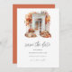 Porta Branca de Casamento de outono decorada com abóboras em laranja e vermelho. Design de aquarela elegante e simples. Os produtos correspondentes podem ser encontrados na coleção de Portas de Solas de Aquarela do Autumn Wedding.