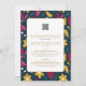 O moderno e o tradicional se fundem aqui para criar um convite de casamento elegante e sofisticado com formulários de modelo de texto em português em ambos os lados para adicionar todos os detalhes necessários, incluindo cerimônia de casamento, recepção, respostas, menu, lista de presentes e outros detalhes, conforme necessário. Você pode adicionar um código de qr scanning para o seu site de casamento ou removê-lo se não for necessário. Este convite pode ser transferido para outros tipos e tamanhos de papel e cartão, incluindo opções de orçamento ou faixa premium. Veja a coleção completa para ver convites com diferentes temas de design, incluindo arte folclórica tradicional, floral, azulejos e outros temas para todas as estações, incluindo primavera, verão, outono e inverno.