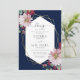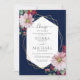 Aqui está um cartão de Mudança de Planos para anunciar o adiamento do seu casamento até que você tenha marcado um novo encontro. Este design apresenta um encantador arranjo floral de aquarela em tons de rosa-pincel e burgundy em azul-marinho juntamente com as suas informações de adiamento de casamento destacadas por um falso quadro geométrico dourado. Se você tiver uma pergunta sobre design ou quiser ver este design em outro produto, por favor, sinta-se à vontade para entrar em contato comigo em jschmidtdesignworks@gmail.com. Design © Judith Schmidt.
