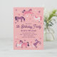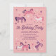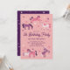 Cavalos roxos, roxos e brancos, bonitos, são criados em um padrão para fazer o perfeito convite equestre para uma garota e um amante de cavalos. A cor de fundo é fácil de personalizar!