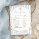 This game features a spring wildflower blue bow ribbon design with a hand-lettered script font. The script headings are images that cannot be edited. All of the other text is fully editable. For more advanced customization of this design, simply select the "Customize It" button above.