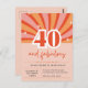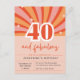 Adicione uma víbora retrógrada ao seu evento com estes convites de festas de aniversário de 40 anos. Design simples e fácil de personalizar com todos os detalhes da festa. Pêssego, cor-de-rosa e vermelho, com o texto: "40 e fabuloso! Junte-se às comemorações do (nome) aniversário". Brilhante, ousado e colorido! O que poderia ser mais fabuloso?