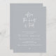 Elegantemente anuncie sua alegria para sempre com nossa carta de convite para celebração de elopementos de casamento, "Feliz Para Sempre Depois de Brunch". Personalizado para casais continuando sua história de amor, este convite atinge um equilíbrio perfeito de sofisticação e charme, estabelecendo a cena de um evento inesquecível. Apresentando uma design de cinza de criança contemporânea, ele adiciona um toque de graça de eterno ao seu dia especial. Projetado pelo talentoso TeeshaDerrick, este convite é uma expressão na moda do seu amor duradouro.