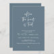 Elegantemente anuncie sua alegria para sempre com nossa carta de convite para celebração de elopementos de casamento, "Feliz Para Sempre Depois de Brunch". Personalizado para casais continuando sua história de amor, este convite atinge um equilíbrio perfeito de sofisticação e charme, estabelecendo a cena de um evento inesquecível. Apresentando um design azul poeirento escuro contemporâneo, ele adiciona um toque de graça eterno ao seu dia especial. Projetado pelo talentoso TeeshaDerrick, este convite é uma expressão na moda do seu amor duradouro.