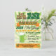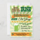 Ruas super legal e modernas. convites de festas do Dia de Patrick com uma grande caneca de cerveja verde na frente e um violino e engraçado jogando Leprechaun nas costas para receber seus convidados com tipografia de excelente, banners e um fundo de explosão solar. Então coma, beba e seja irlandês como McBooboo. Ilustração desenhada à mão por McBooboo.
